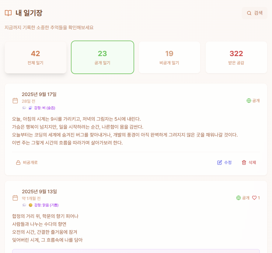 온기록은 그런 사람들을 위한 **“공감 중심의 일기장”**입니다.